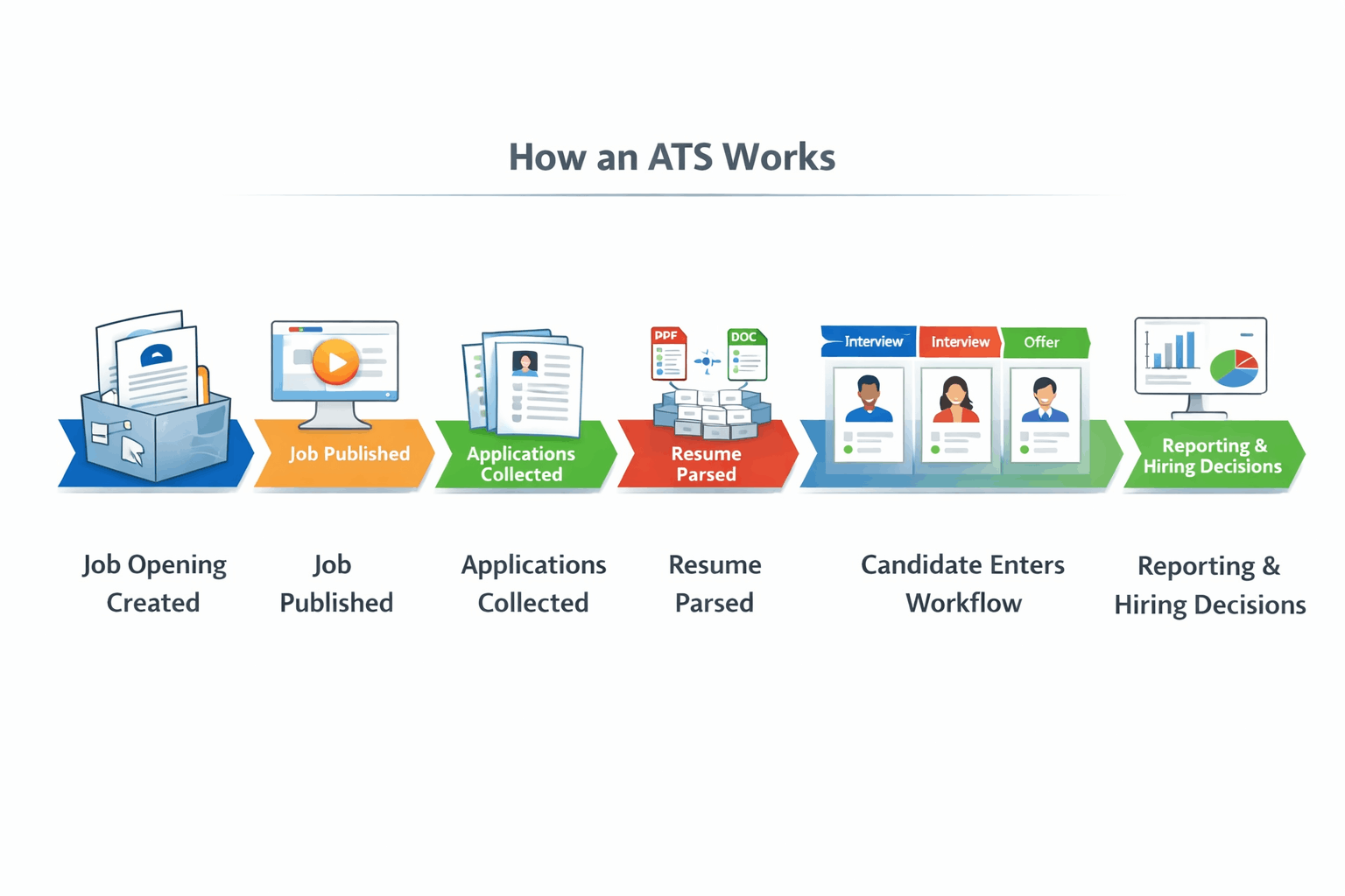 Most applicant tracking systems follow the same basic flow.