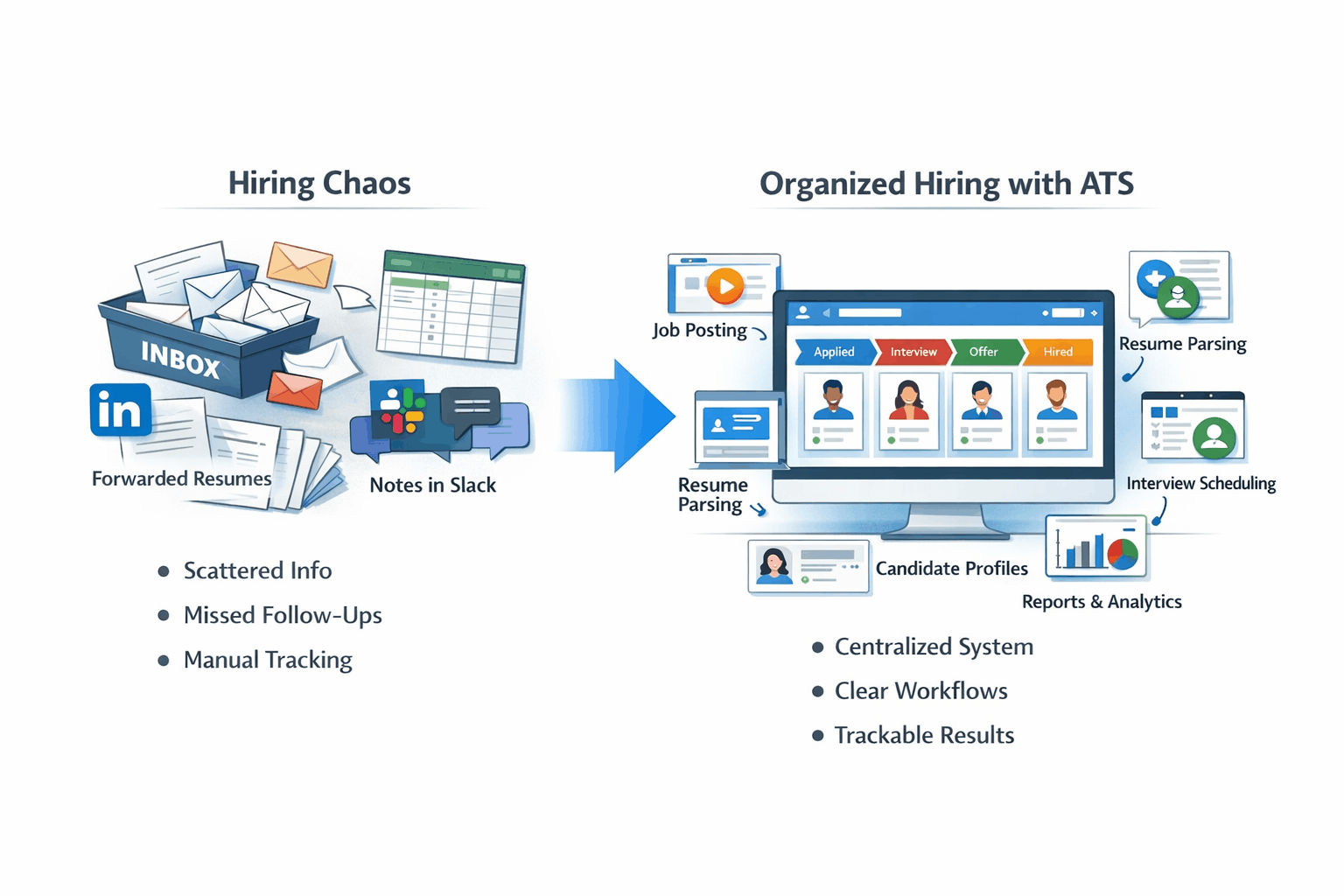 A resume lands in your inbox. Another comes through LinkedIn. A third gets forwarded by a hiring manager. Notes live in a spreadsheet. Interview feedback sits in Slack. One candidate gets a fast reply. Another gets forgotten for six days. Nobody is fully sure who owns the next step.